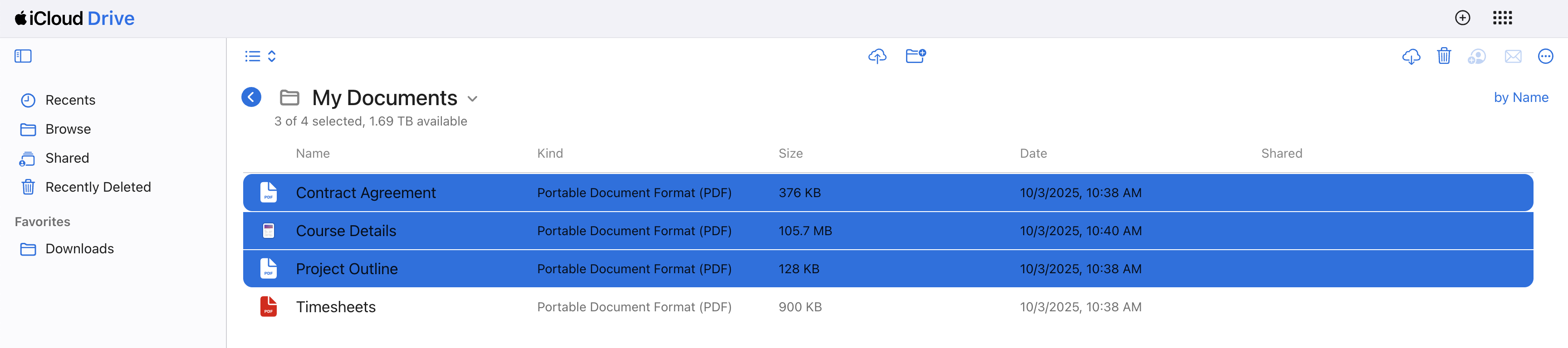 - Hold Ctrl (Windows) or Command (macOS) to select multiple files.